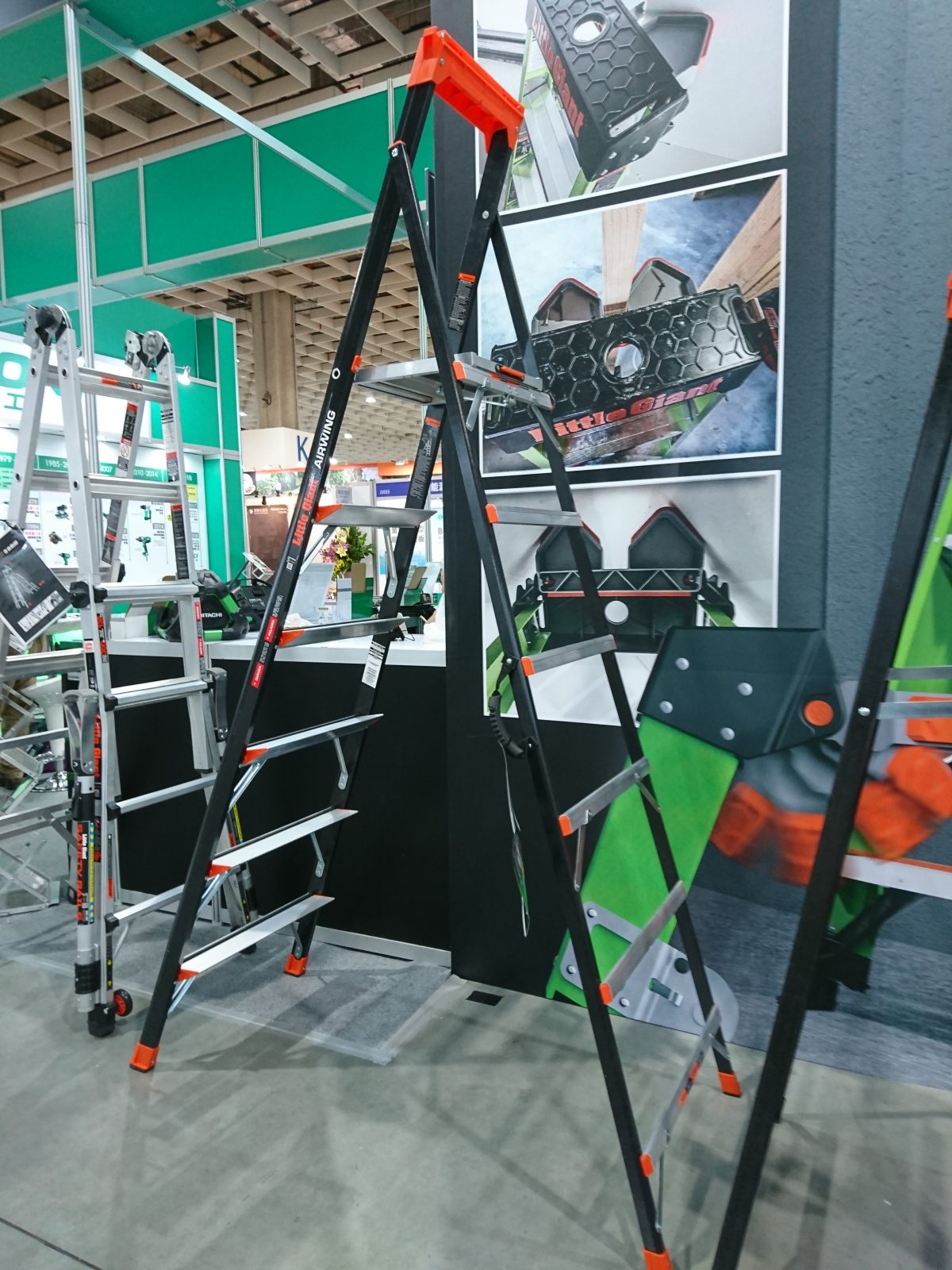 這次展覽活動小巨人工作梯推出全新商品多功能梯含自動腳、簡捷梯寬踏板、穩固梯寬踏板、先鋒梯等,想要一睹為快或搶先體驗新品的民眾,那就趕快手刀衝刺,立即體驗。