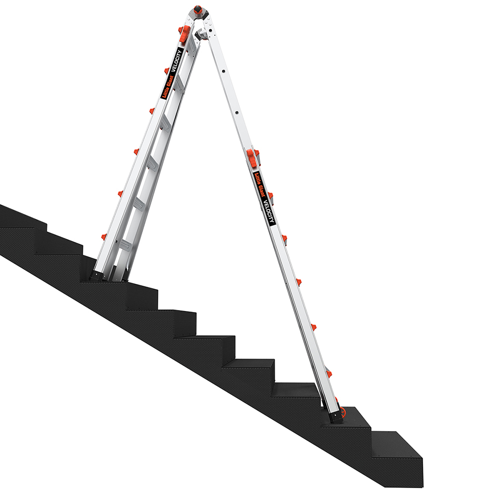 將萬用梯結合自動腳調節器能夠使工作梯放置在不平坦的地面上依然安全穩固。一般來說,如果您是放置在傾斜地面上,容易使工作梯傾斜或者搖晃,但是您只需要將調節器延伸至地面上使工作梯維持水平,您可以更加安全和快速和的 #完成任務